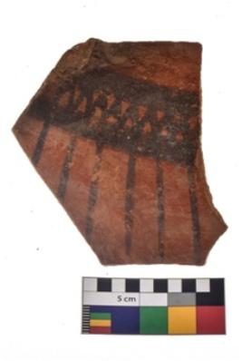 | Description / विवरण | Specimen of a potsherd with black decorative geometric painting. |