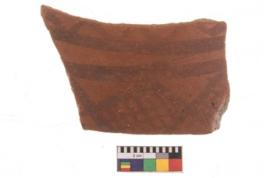 | Description / विवरण | Specimen of potsherd with black decorative geometric painting. Type Black on Red Ware . |