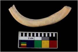 | Description / विवरण | Fragment of an undecorated shell bangle. It is creamish in colour and rectangular in cross section. |