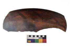 | Description / विवरण | Specimen of a potsherd with black decorative geometric painting. |