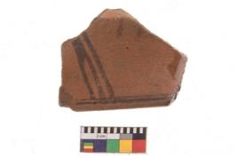 | Description / विवरण | Specimen of potsherd with black decorative geometric painting. Type Black on Red Ware . |