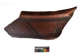 | Description / विवरण | Specimen of a potsherd with black decorative geometric painting. |