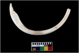 | Description / विवरण | Fragment of an undecorated shell bangle. It is creamish in colour and rectangular in cross section. |