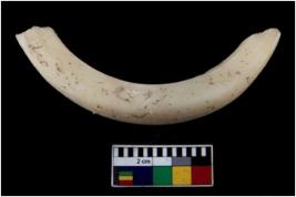 | Description / विवरण | Fragment of an undecorated shell bangle. It is creamish in colour and rectangular in cross section. |