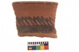 | Description / विवरण | Specimen of potsherd with black decorative geometric painting. Type Black on Red Ware . |