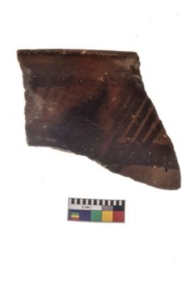 | Description / विवरण | Specimen of a potsherd with black decorative geometric painting. |
