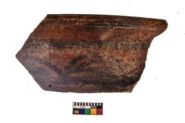 | Description / विवरण | Specimen of a potsherd with black decorative geometric painting. |