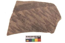 | Description / विवरण | Specimen of potsherd with black decorative geometric painting. Type Black on Red Ware . |