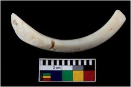 | Description / विवरण | Fragment of an undecorated shell bangle. It is creamish in colour and rectangular in cross section. |