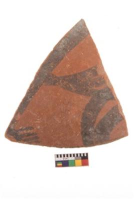 | Description / विवरण | Specimen of potsherd with black decorative geometric painting. Type Black on Red Ware . |
