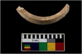 | Description / विवरण | Fragment of an undecorated shell bangle. It is creamish in colour and rectangular in cross section. |