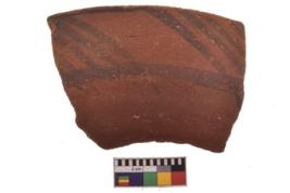 | Description / विवरण | Specimen of black on red ware with decorative geometric Outcurved lines painting. |