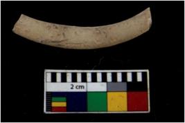 | Description / विवरण | Fragment of an undecorated shell bangle. It is creamish in colour and rectangular in cross section. |