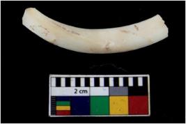 | Description / विवरण | Fragment of an undecorated shell bangle. It is creamish in colour and rectangular in cross section. |