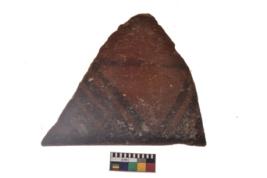 | Description / विवरण | Specimen of a potsherd with black decorative geometric painting. |