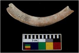 | Description / विवरण | Fragment of an undecorated shell bangle. It is creamish in colour and rectangular in cross section. |