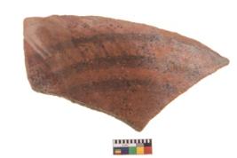 | Description / विवरण | Specimen of potsherd with black decorative geometric painting. Type Black on Red Ware . |