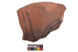| Description / विवरण | Specimen of black on red ware with decorative geometric Vertical and oblique lines painting. |