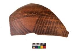| Description / विवरण | Specimen of a potsherd with black decorative geometric painting. |