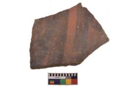 | Description / विवरण | Specimen of black on red ware with decorative geometric Two horizontal bands containing criss-cross pattern painting. |