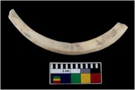 | Description / विवरण | Fragment of an undecorated shell bangle. It is creamish in colour and rectangular in cross section. |