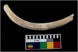 | Description / विवरण | Fragment of an undecorated shell bangle. It is creamish in colour and rectangular in cross section. |