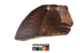 | Description / विवरण | Specimen of a potsherd with black decorative geometric painting. |