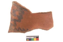 | Description / विवरण | Specimen of potsherd with black decorative geometric painting. Type Black on Red Ware . |