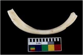 | Description / विवरण | Fragment of an undecorated shell bangle. It is creamish in colour and rectangular in cross section. |