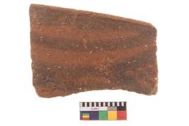 | Description / विवरण | Specimen of potsherd with black decorative geometric painting. Type Black on Red Ware . |