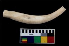 | Description / विवरण | Fragment of an undecorated shell bangle. It is creamish in colour and rectangular in cross section. |