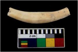 | Description / विवरण | Fragment of an undecorated shell bangle. It is creamish in colour and rectangular in cross section. |