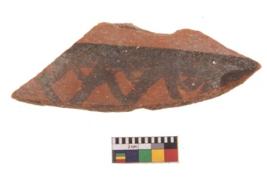 | Description / विवरण | Specimen of potsherd with black decorative geometric painting. Type Black on Red Ware . |