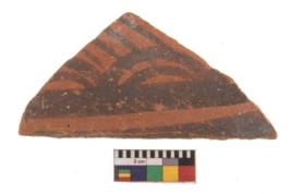 | Description / विवरण | Specimen of potsherd with black decorative geometric painting. Type Black on Red Ware . |