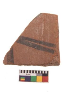 | Description / विवरण | Specimen of potsherd with black decorative geometric painting. Type Black on Red Ware . |