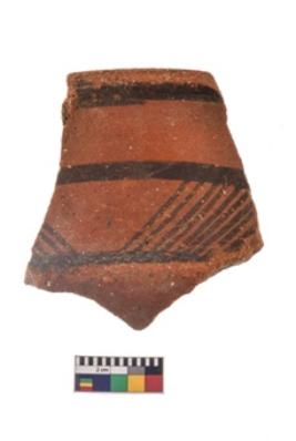 | Description / विवरण | Specimen of a potsherd with black decorative geometric painting. |