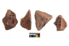 | Description / विवरण | A Sub rectangular flake with wavy thick distal end and broken functional top. It reined pebbly cortex on one side and irregular thin edge on the other. The dorsal is relatively flat. A patch of cortex near the section which is slanting to the dorsal |
