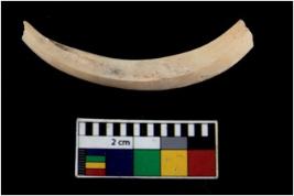 | Description / विवरण | Fragment of an undecorated shell bangle. It is creamish in colour and rectangular in cross section. |