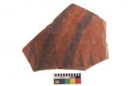 | Description / विवरण | Specimen of potsherd with black decorative geometric painting. Type Black on Red Ware . |