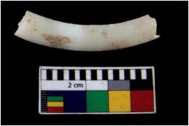 | Description / विवरण | Fragment of an undecorated shell bangle. It is creamish in colour and rectangular in cross section. |