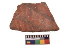 | Description / विवरण | Specimen of black on red ware with decorative geometric A row of arches over a horizontal band painting. |