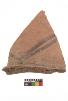 | Description / विवरण | Specimen of potsherd with black decorative geometric painting. Type Black on Red Ware . |