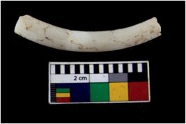 | Description / विवरण | Fragment of an undecorated shell bangle. It is creamish in colour and rectangular in cross section. |