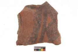 | Description / विवरण | Specimen of potsherd with black decorative geometric painting. Type Black on Red Ware . |