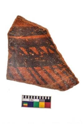 | Description / विवरण | Specimen of a potsherd with black decorative geometric painting. |