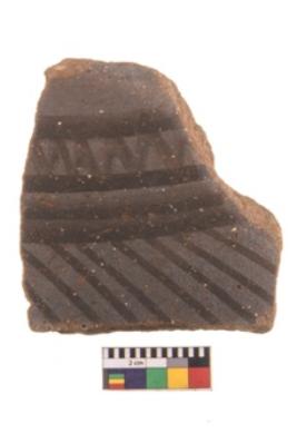 | Description / विवरण | Specimen of potsherd with black decorative geometric painting. Type Black on Red Ware . |