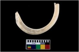 | Description / विवरण | Fragment of an undecorated shell bangle. It is creamish in colour and rectangular in cross section. |