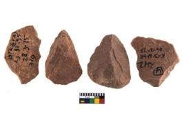 | Description / विवरण | A Sub rectangular flake with wavy thick distal end and broken functional top. It reined pebbly cortex on one side and irregular thin edge on the other. The dorsal is relatively flat. A patch of cortex near the section which is slanting to the dorsal |