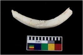 | Description / विवरण | Fragment of an undecorated shell bangle. It is creamish in colour and rectangular in cross section. |