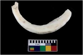 | Description / विवरण | Fragment of an undecorated shell bangle. It is creamish in colour and rectangular in cross section. |